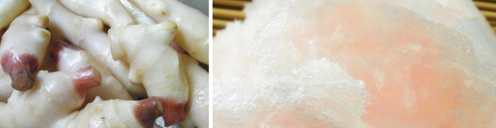 ほのかなピンク色は、新しょうがの成分がレモン果汁の酸に反応して変色したもの、新しょうがの季節だけ楽しむことができる天然の色あいです。