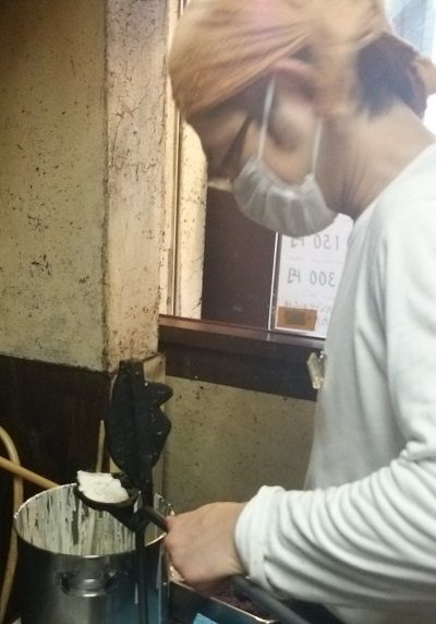「たいやきを焼きたい」、基本的にうちで働きたいと言ってくれる人は、正社員であれ、アルバイトであれそう思って来てくれているのですが、技術を身につけるのに多少の時間はかかります。 たいやきのコナ(生地)をハシ(金型)に敷いてます。(新人ではあ... -