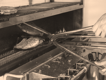 「桃太郎焼」が何個ずつ焼いていたのかは不明ですが、この焼き方はたい焼きで言うところの「養殖もの」、つまり連型で焼く方法と同じです。年代を考えると一丁焼きがたい焼きの元祖の方法というのもやや怪しくなってきました。ただ、たい焼きとして広まったのは一丁焼きが先だということになります。