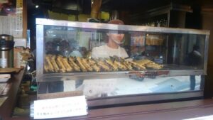 お客さんがあまり多くない場合には1台だけの焼き台で焼きますが、この時に大量のご注文をいただいたり、たくさんのお客さんに来ていただいたりすると、お渡しまでかなりお待ちいただくことになります。