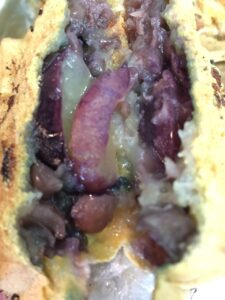 結果的にこれは失敗でした。濃縮された干しぶどうの甘みがつぶあんの甘さと似ており、存在がなくなってしまったのです。しかも熱を入れて軟らかくなった干しぶどうは食感までつぶあんに似てしまいました。ぶどうの品種による違いはあると思いますが、多少の差があっても無理と判断しました。