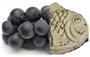 シャインマスカットは、皮ごと食べることができるので期待していたのですが、マスカットのような白系のぶどうは黒系のぶどうに比べて甘みがあるものの酸味や渋みに乏しいのでたいやきにはまったく合いませんでした。