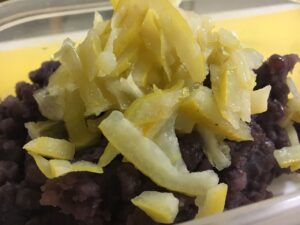 ともえ庵のつぶあんに合わせたレモンの果肉とピール(皮)