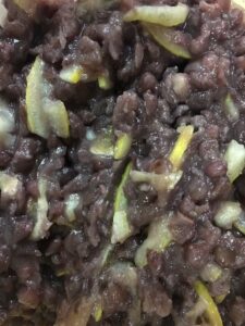 レモンの果肉はそのまま、レモンの皮は刻んでから何度も茹でこぼしをして食べやすい固さと苦みに調整してつぶあんに混ぜ込みます。