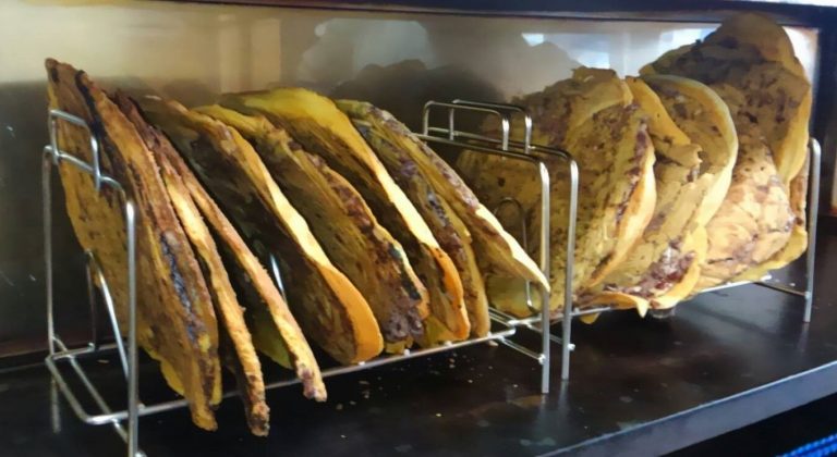 苦労したのは、パリパリに仕上げるタイミングです。薄いものなので、焼き過ぎるとすぐに焦げてしまいますが、焼きが足りないと皮に水分が残ったままになってしまいます。結局、比較的短時間で焼いて、その後じっくりと焼き台の上で乾燥することで水分を飛ばすのが一番良いとわかりました。