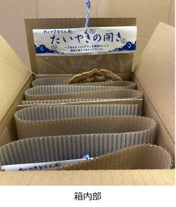 「みりん干し」は通常の「たいやきの開き」に比べて表面にみりん醤油を塗っている分、少し割れにくくなっています。それでも、もともとが割れやすい「たいやきの開き」ですので、他のものと一緒に鞄や袋に入れたりせず、手運びで持ち歩いていただければと思います。