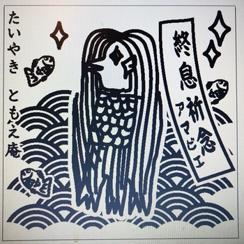 たいやき ともえ庵でも、「アマビエ」の絵を多くの人に見てもらうのがせめてもの新型コロナウイルス感染症の終息に向けた活動と考え、一番多くの人が手に取って下さる普通のたいやきの袋にデザインしました。できるだけ御利益があるように、瓦版に描かれた「アマビエ」に近いものに仕上げています。