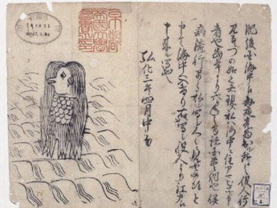 年の間諸国豊作也。併し、病流行、早々私写し人々に見せくれと申て、海中へ入けり。右写し役人より江戸え申来る写也。 弘化三年四月中旬