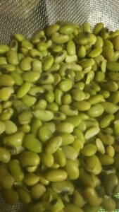 ゆで上がった青大豆、見た目はさやから出した枝豆とそっくりですが、味は濃厚です。